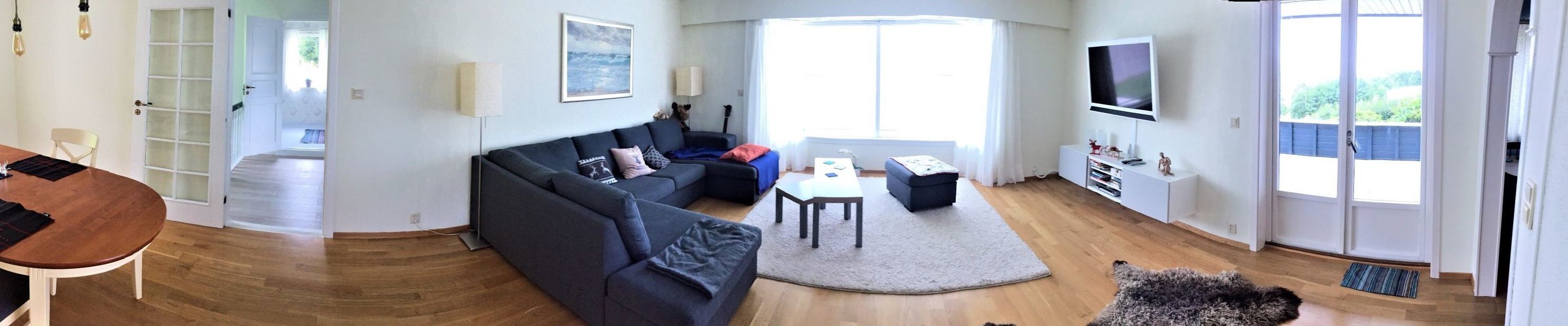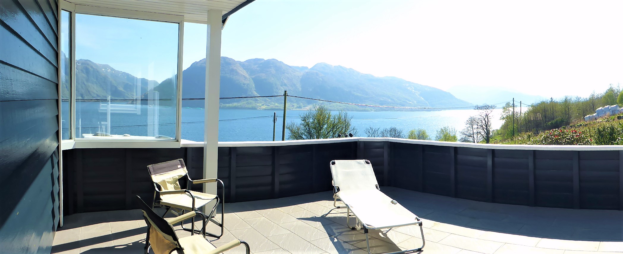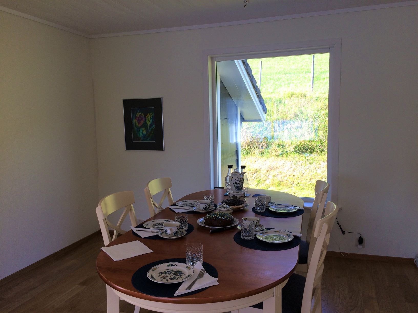 Der fast einmalige Blick auf den Fjord und auf die umliegenden Berge machen das zentrale Wohnzimmer mit seinem großzügigem Essbereich zum Erlebnis. Wir können Dir versprechen, dass auch Du Dich irgendwann – eher früher denn später – am Fenster stehend oder sitzend wiederfinden wirst, um ganz einfach nur diese geniale Aussicht zu geniesen.